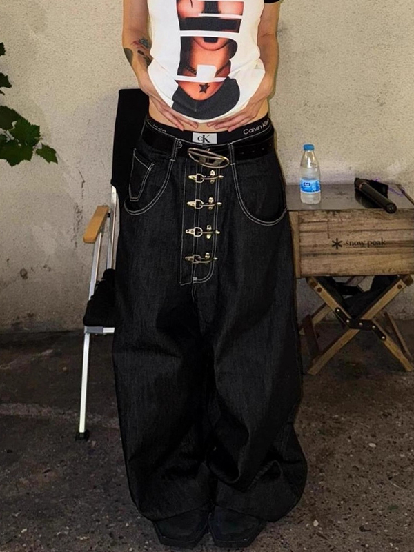 Low Rise Schlagjeans im Cargo-Stil