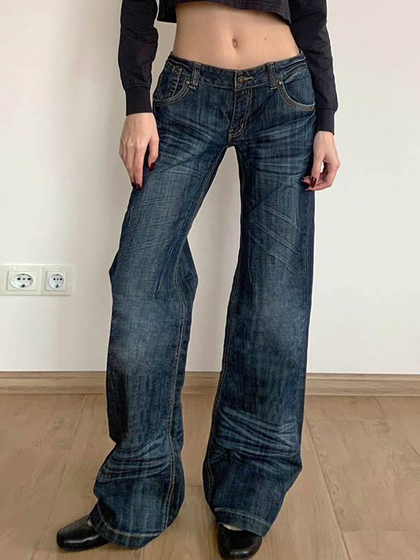 Vintage Plissee gewaschene Loose Flare Jeans