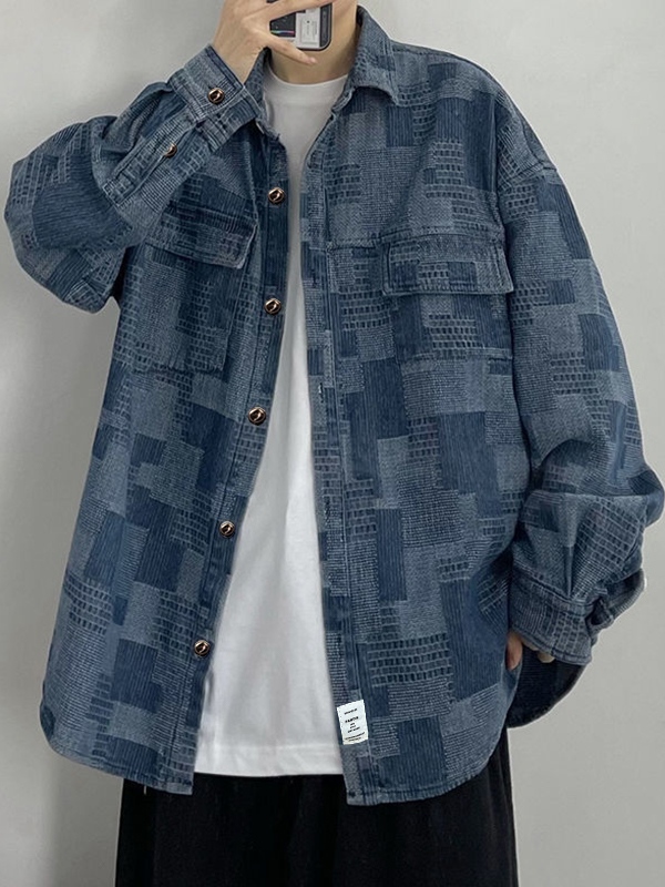 Herrenbluse im Vintage-Stil mit Karomuster und langen Ärmeln