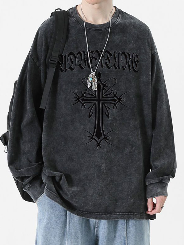 Herren-Sweatshirt mit Distressed-Cross-Print