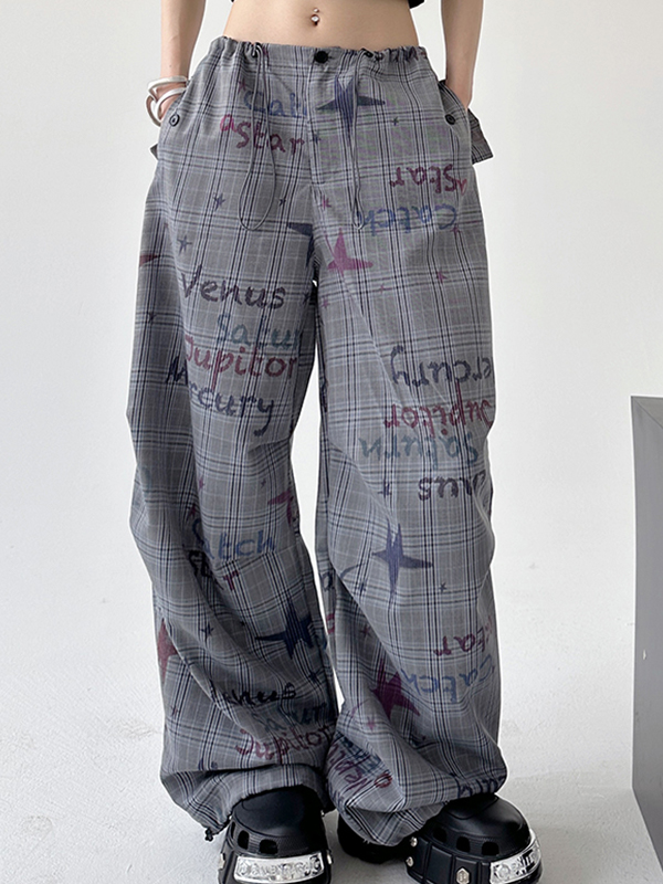 Hose mit weitem Bein und Vintage-Graffiti-Print