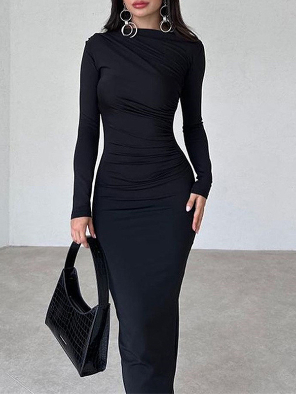 Schmal geschnittenes, einfarbiges, temperamentvolles, langes, hüftumwickeltes Kleid