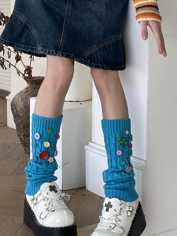 Knopfverzierter Zopfmuster-Beinwärmer