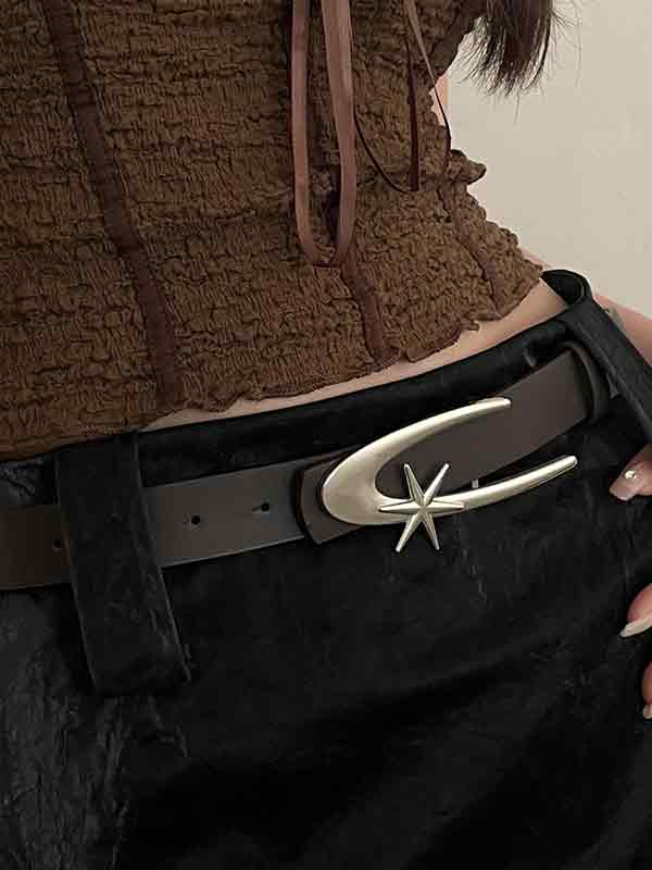 Gürtel mit gravierter Design-Schnalle aus Metall mit Sterndekor