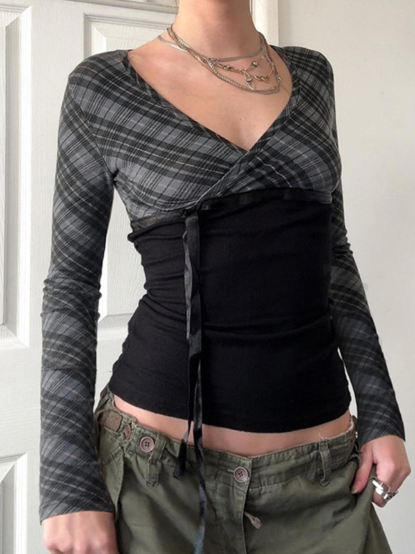 T-Shirt mit V-Ausschnitt und langen Ärmeln