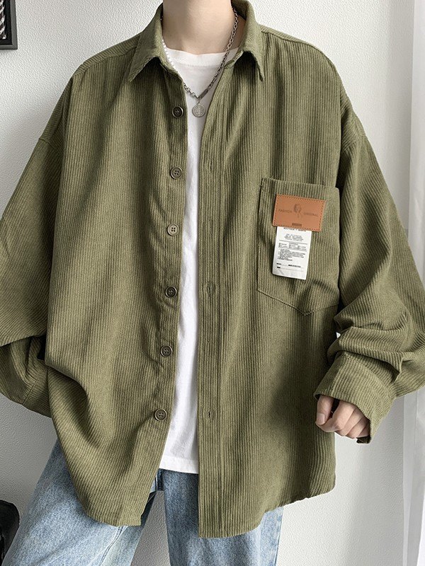 Cord-Langarmhemd mit Patch-Detail für Herren