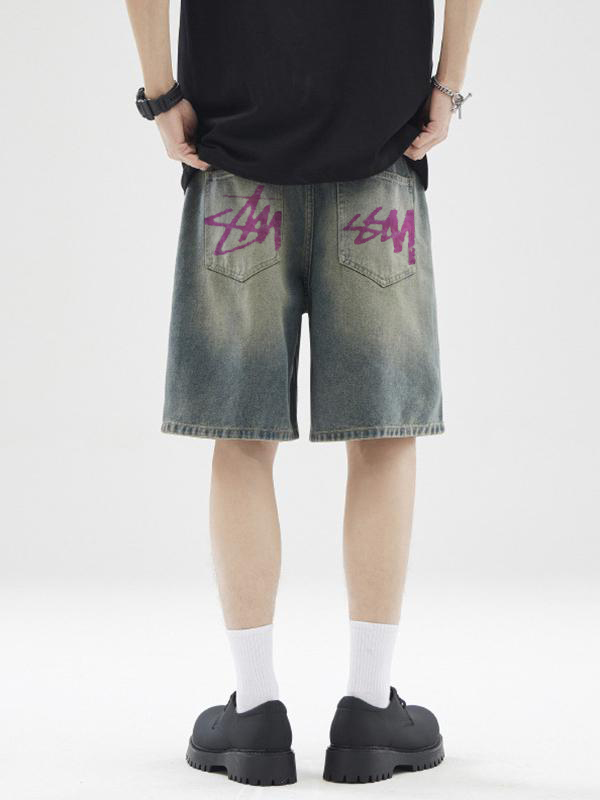 Lockere, lässige Jeansshorts für Herren mit Buchstabendruck