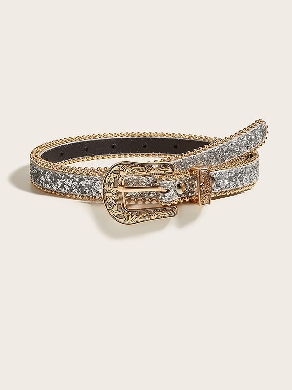 Schmaler Gürtel mit Pailletten geschnitzter Schnalle