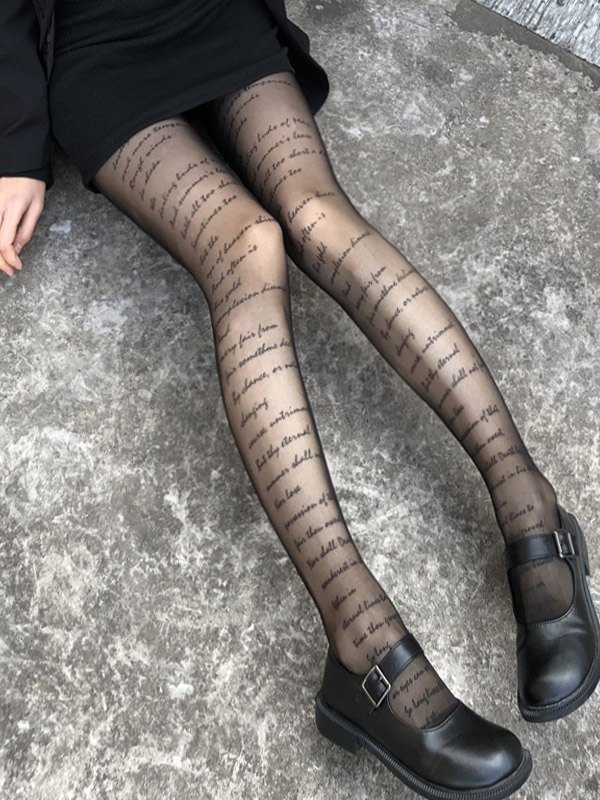 Transparente Strumpfhose mit Allover-Buchstabendruck