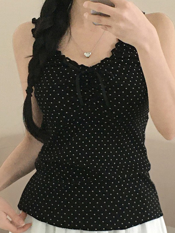 Tanktop mit gerüschtem Saum und Holzohrringen