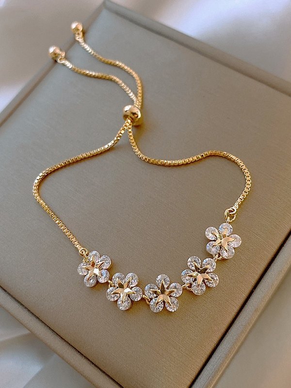 Strass verstellbares goldenes Armband mit Blumenmuster