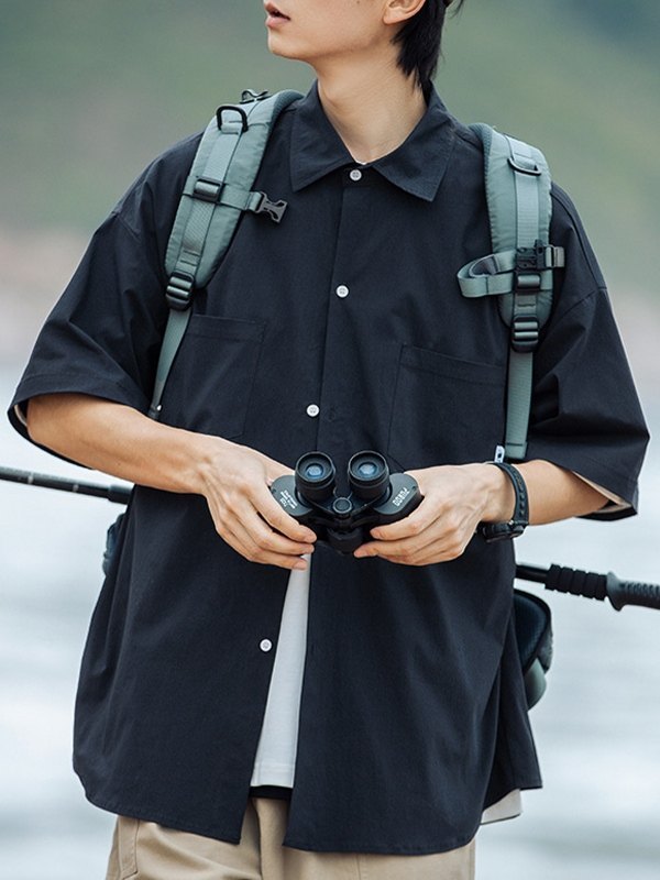 Kurzärmliges Hemd mit Knopfleiste und Fronttasche für Herren