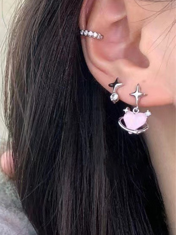 6 Stück Herz-Stern-Perlen-Diamant-Dekor-Ohrstecker
