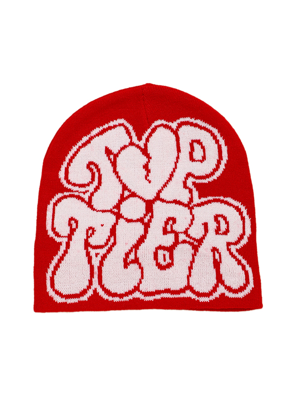 Kontrastfarbene Beanie-Mütze mit Buchstabendruck