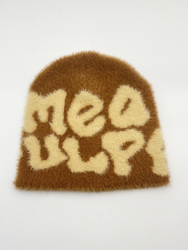 Plüsch-Beanie mit kontrastfarbenem Buchstaben-Print
