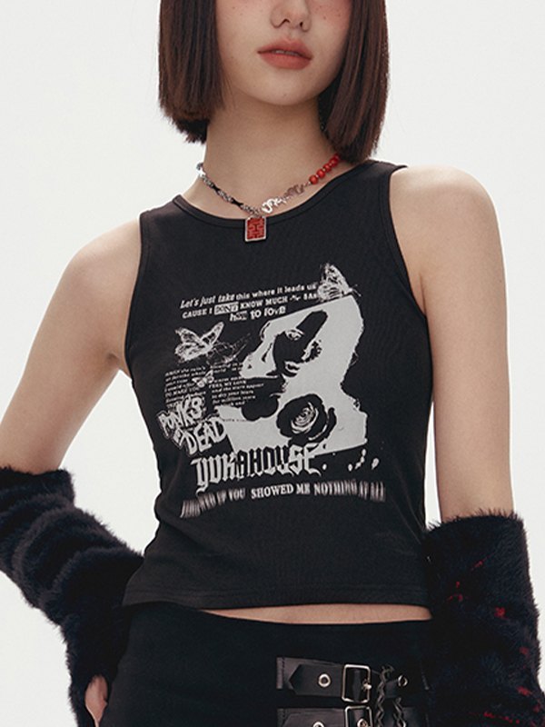 Gothic Punk bedrucktes Ripp-Crop-Tanktop