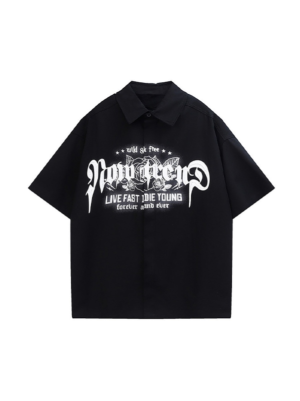 Herren-Punk-Grafik-Button-Down-Hemd