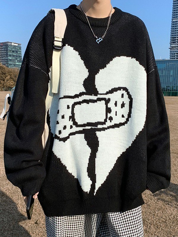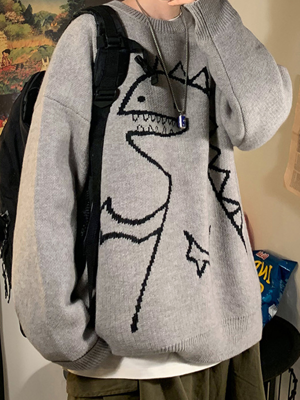 Übergroßer Kapuzenpullover mit Rock-Charakter-Print für Herren