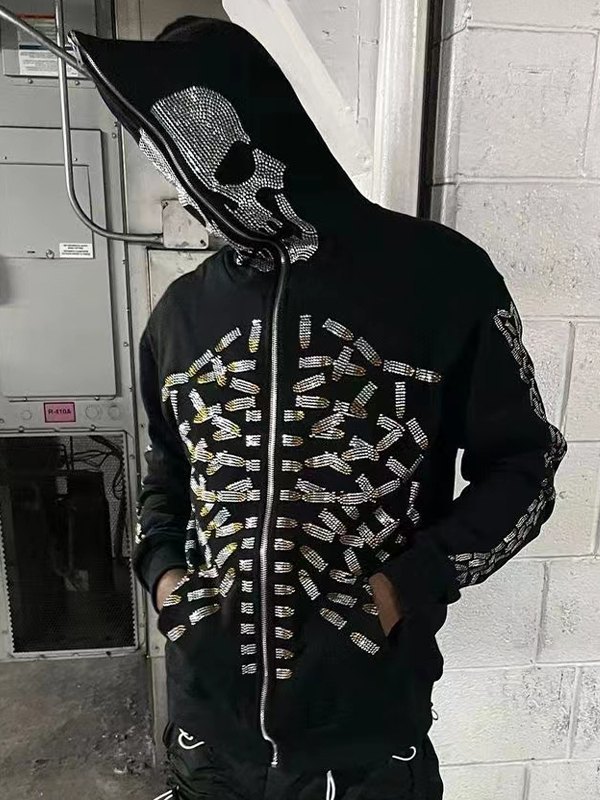 Kapuzenpullover mit Reißverschluss für Herren mit Strassschädel
