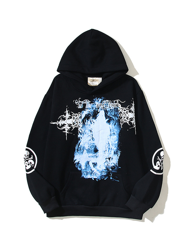 Übergroßer Langarm-Hoodie mit abstraktem Fleece-Print für Herren