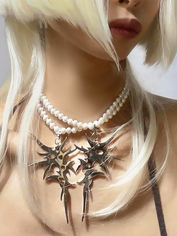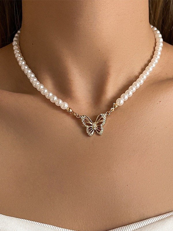 Strass-Schmetterlings-Faux-Perlen-Halskette