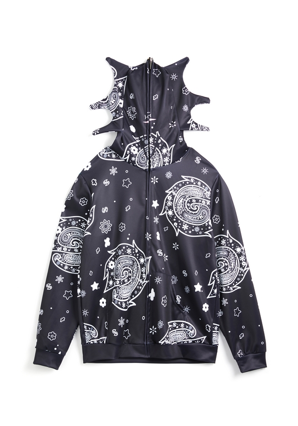 Übergroßer Kapuzenpullover mit durchgehendem Reißverschluss für Herren mit Spinnenmuster
