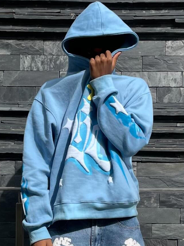 Übergroßer Street-Hoodie für Herren mit buntem Stern-Schmetterlings-Aufdruck