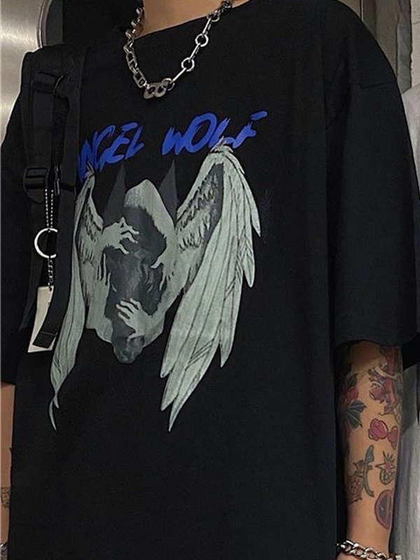 Angel Wolf Kurzarm-Grafik-T-Shirt für Herren