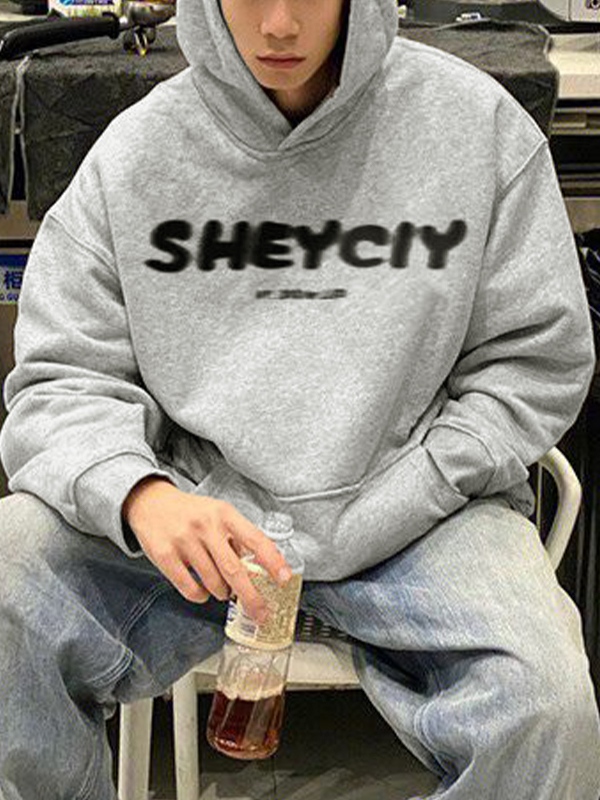 Übergroßer Kapuzenpullover für Herren mit verschwommenem Buchstabendruck
