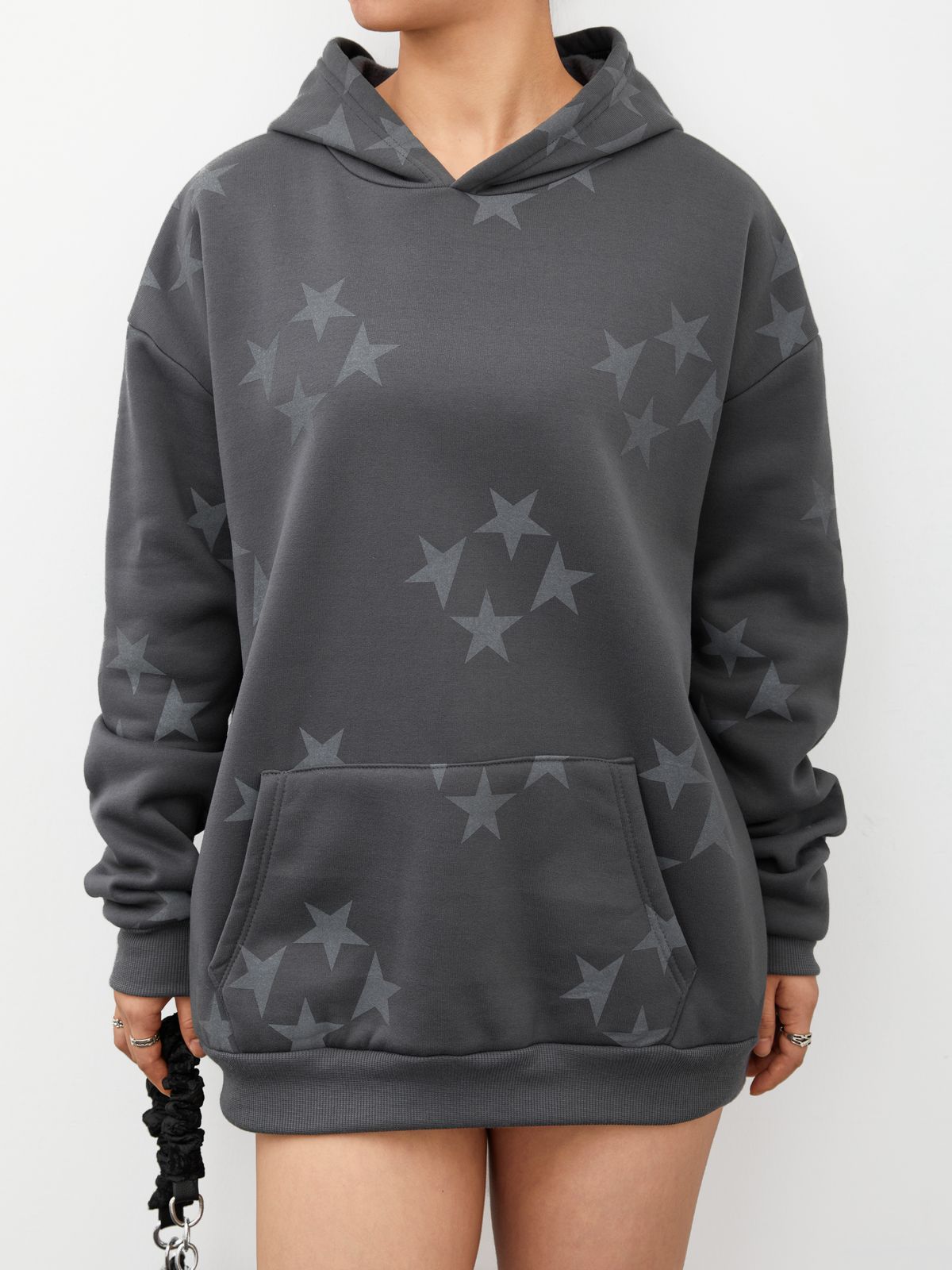 Übergroßer Kapuzenpullover mit Sternendruck und Reißverschluss