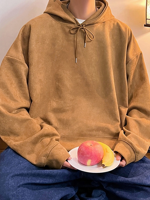 Einfarbiger, übergroßer Kapuzenpullover mit Kordelzug für Herren