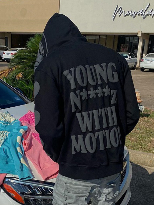 Übergroßer Kapuzenpullover für Herren mit lustigem Aufdruck und Reißverschluss