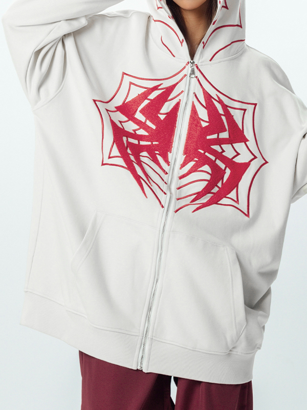 Übergroßer Kapuzenpullover mit durchgehendem Reißverschluss für Herren mit Spinnenmuster