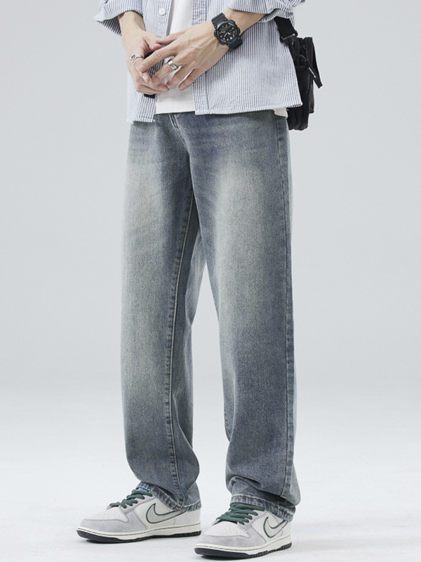 Herren All-Match Schlankheits-Jeans mit weitem Bein und leicht ausgestellter Waschung