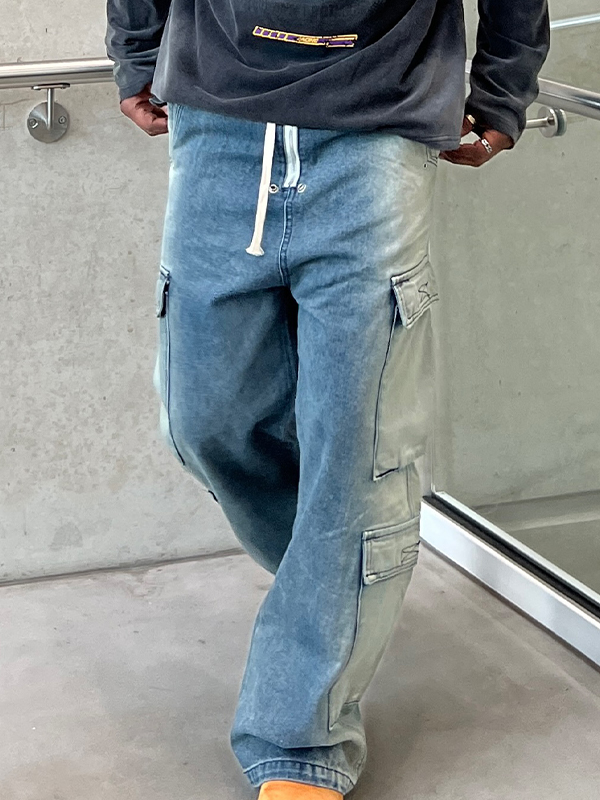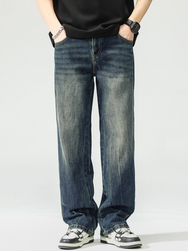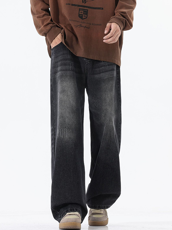 Lose lockere Baggy-Jeans für Herren mit verwaschenem Aufdruck