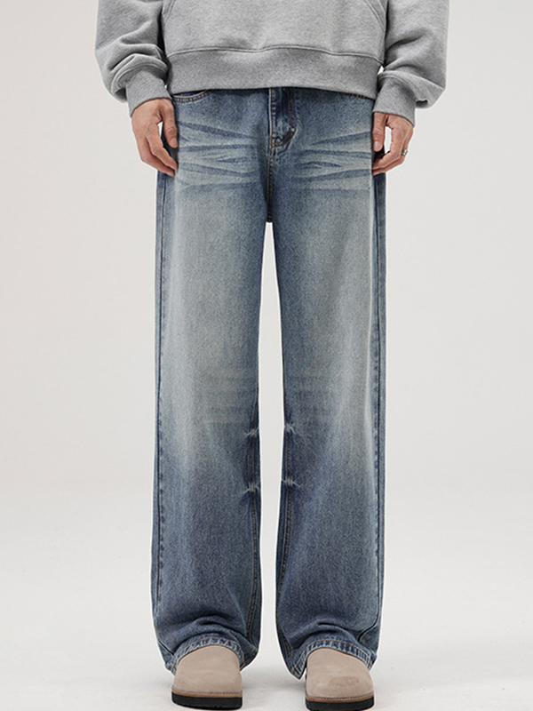 Lockere Jeans mit weitem Bein und verwaschenem American Retro-Look