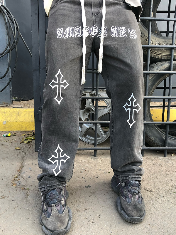 Lockere Jeans mit Kreuz-Print für Herren