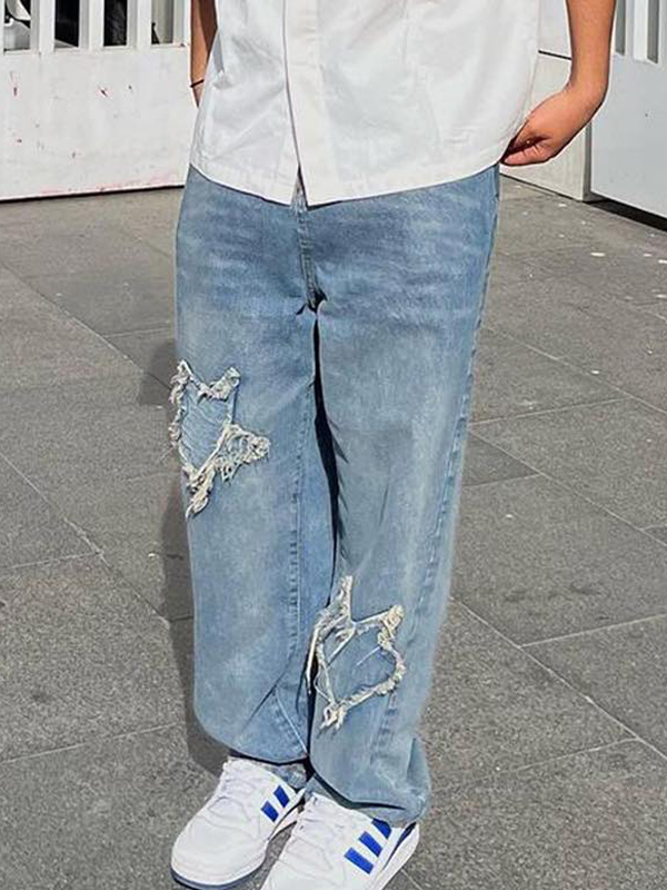 Lose Herrenjeans mit zerrissenem Stickerei-Patch