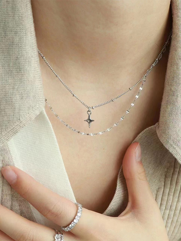 Doppellagige schlichte Halskette mit Stern