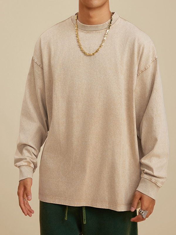 Herren-Langarm-T-Shirt im Vintage-Look, gewaschen, einfarbig