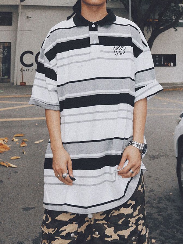 Herren-Kurzarm-T-Shirt mit Kontraststreifen und Stickerei