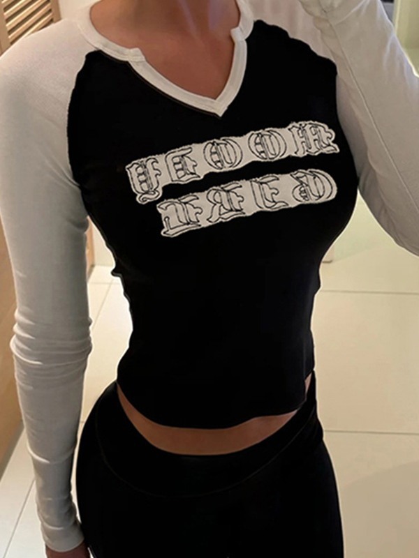 Herren-Langarm-T-Shirt mit Vintage-Print und Patchwork-Design