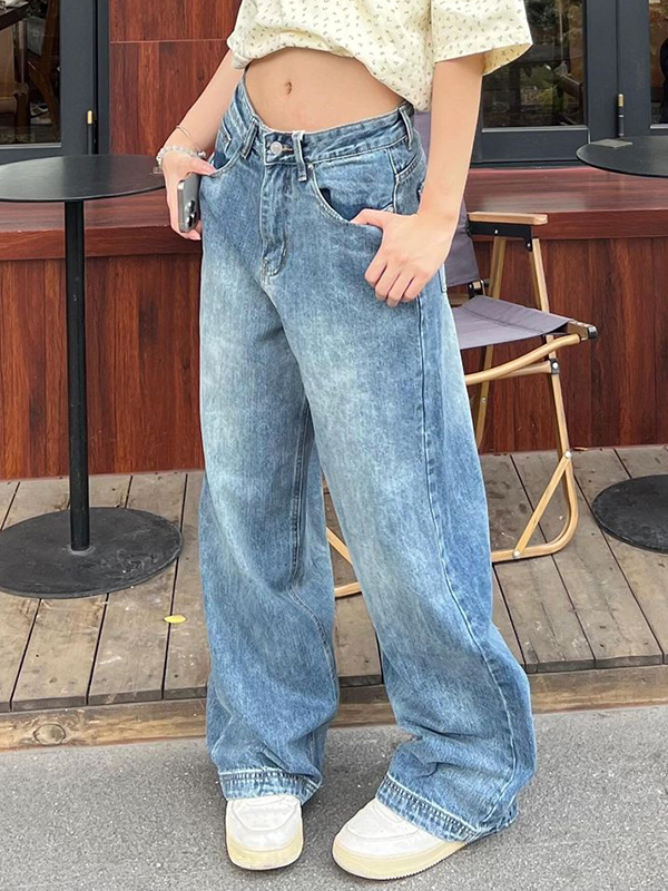 Gewaschene klassische Herrenjeans mit geradem Bein