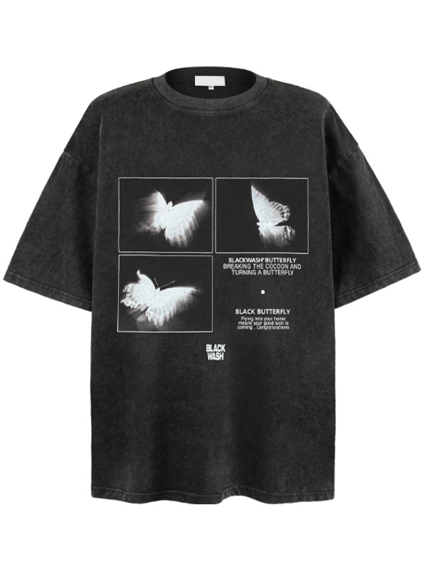 Übergroßes, kurzärmliges T-Shirt mit Schmetterlingsgrafik für Herren