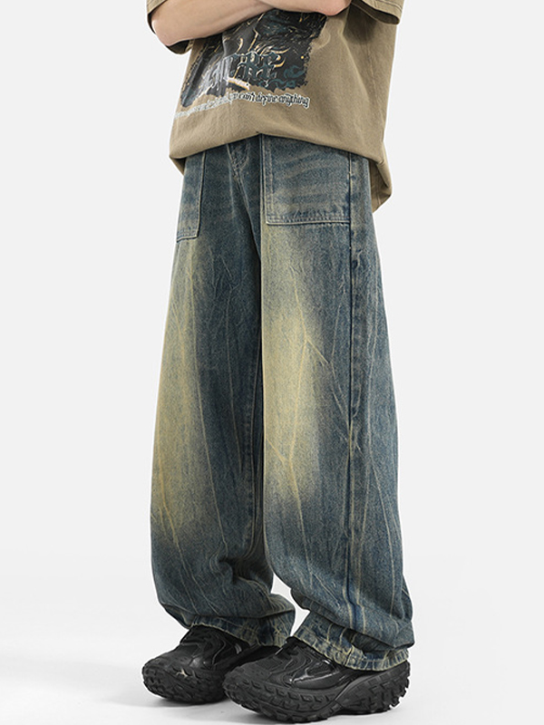 Lose lockere Baggy-Jeans für Herren mit verwaschenem Aufdruck