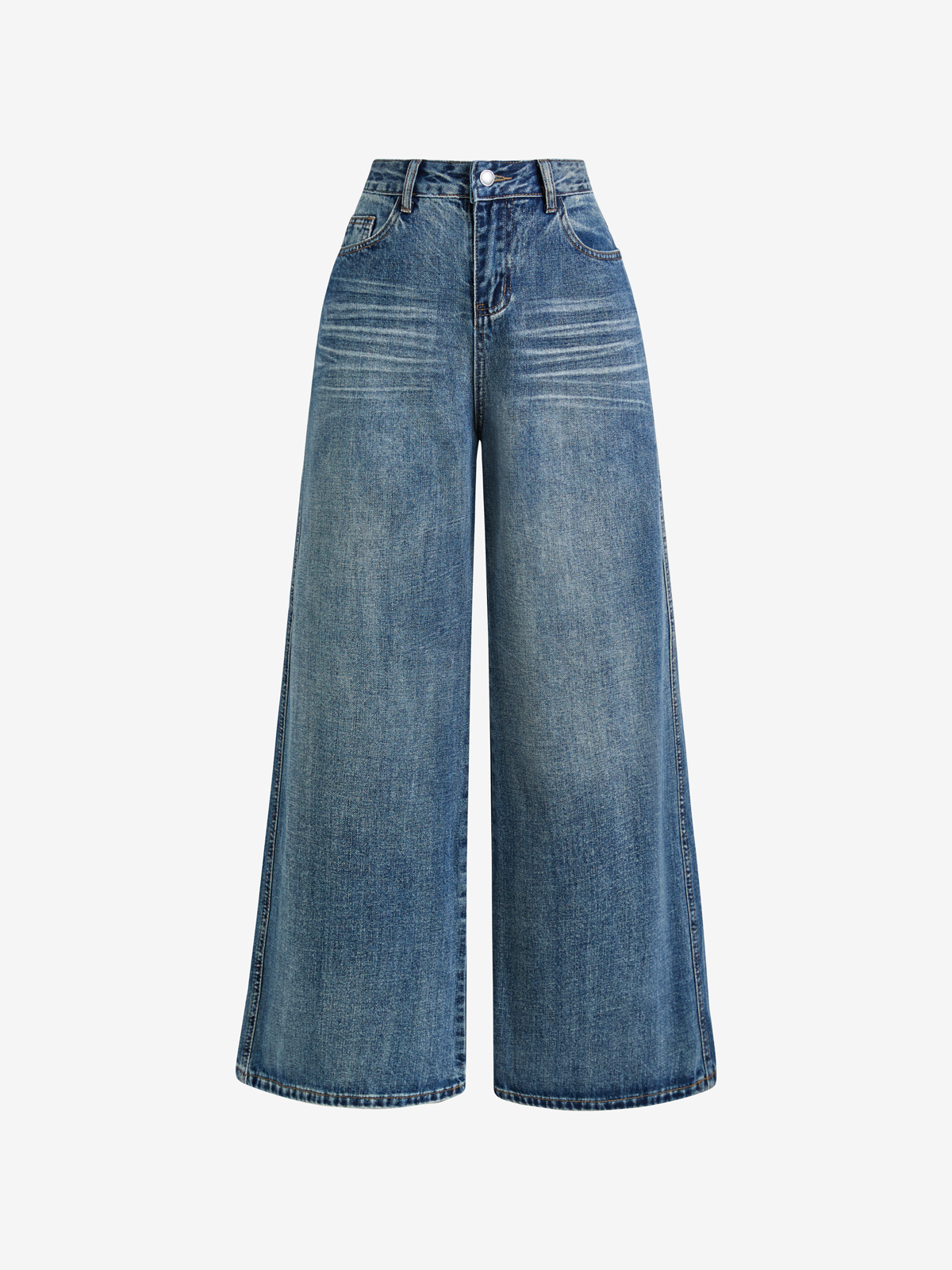 Gerade, lockere Jeans im amerikanischen Retro-Stil mit Katzenschnurrhaaren