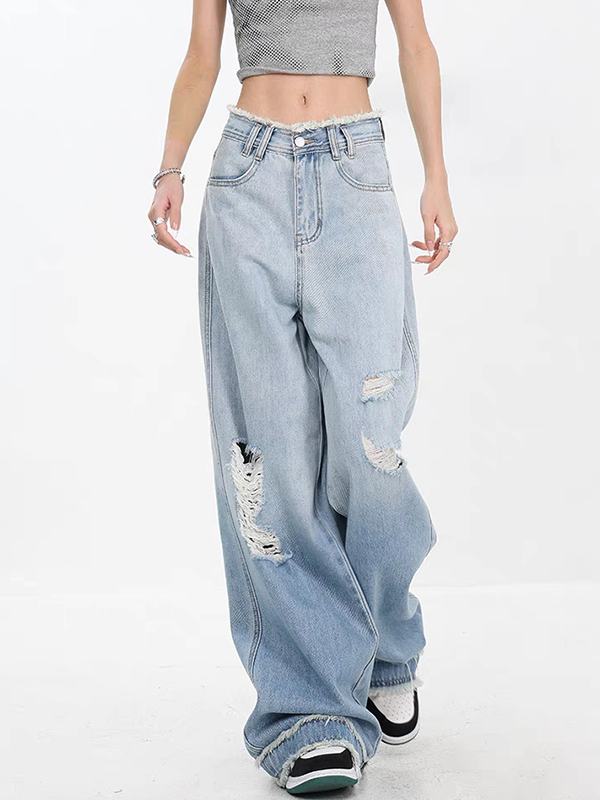 Lockere Jeans mit Vintage-Waschung und Löchern