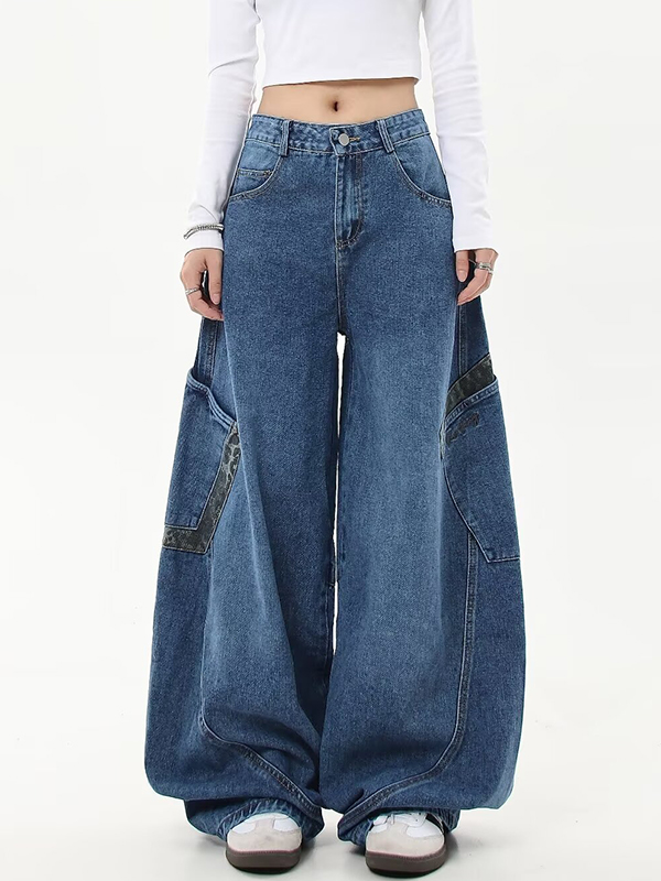 American Retro Boyfriendjeans mit Leopardenmuster und Nähten