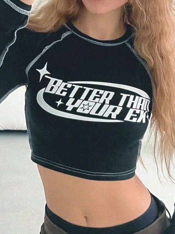 Langarm-T-Shirt mit One-Shoulder-Lettering