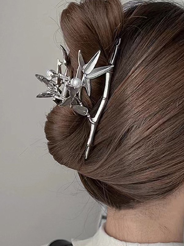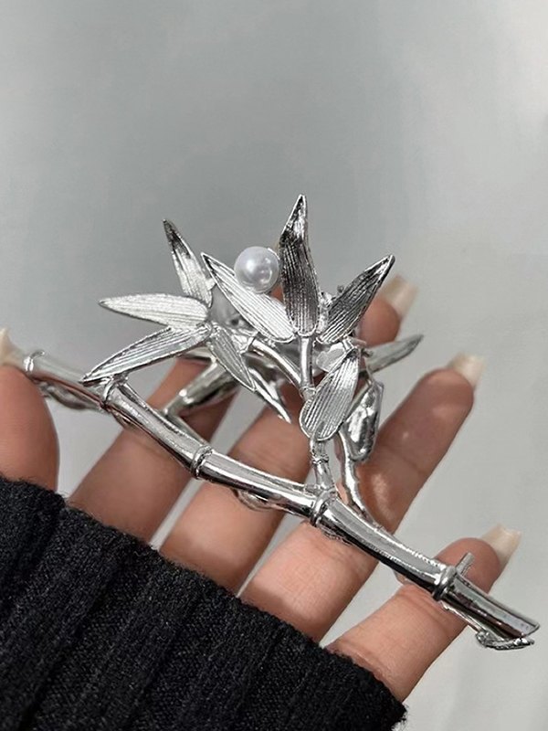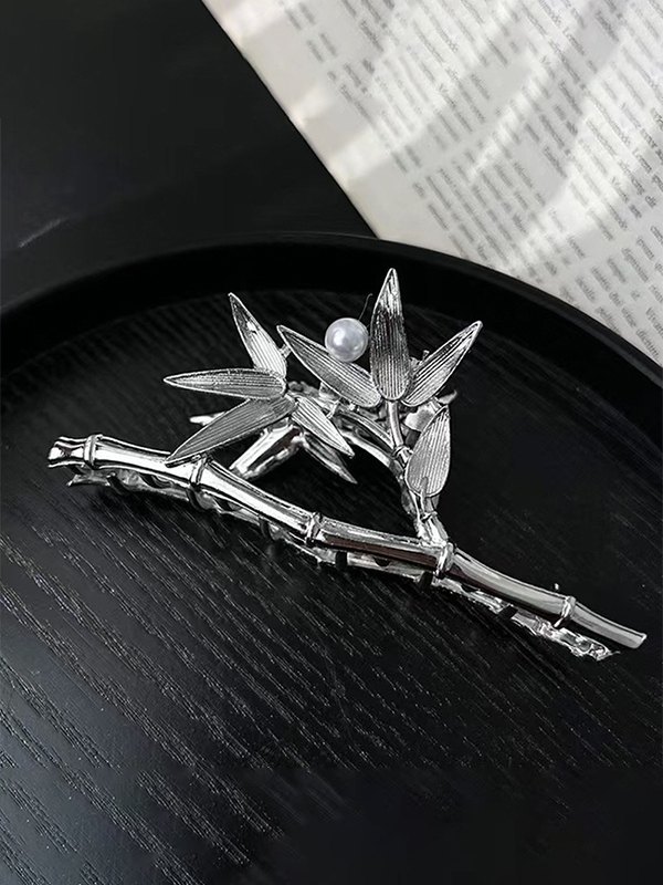 Bambus Blatt Silber Haarklammer
